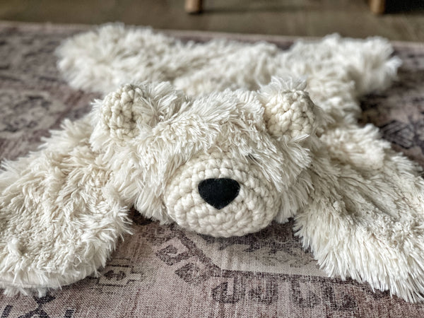 ClaraLoo Animal Loveys are made with faux fur, polyester stuffing, flannel fabric (for some of the animals), yarn, and felt (for some of the animals).