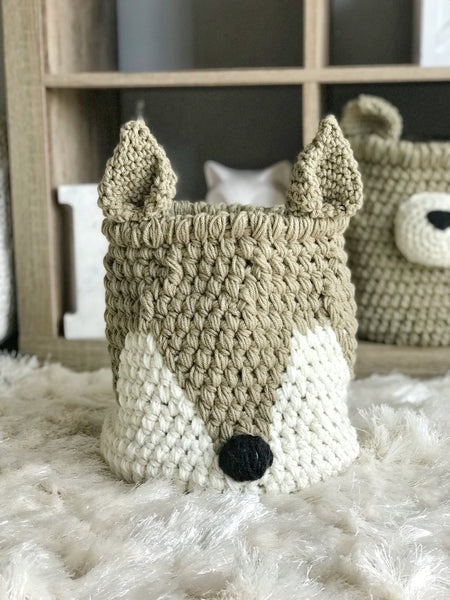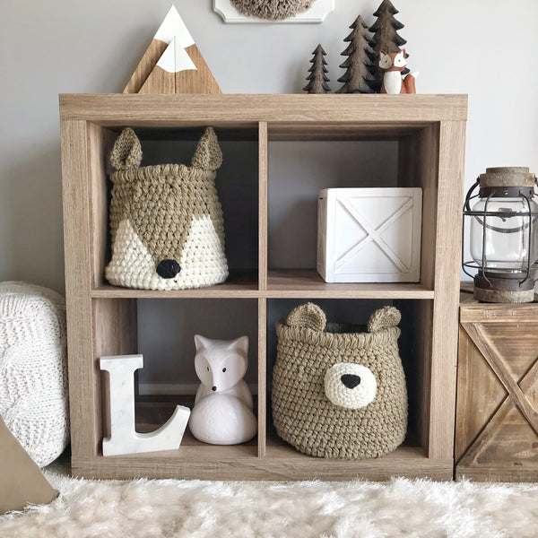 Organize with style with our Crochet Fox Basket! This handmade Fox Basket is the perfect addition to any woodland, forest, hunting, camping, or cabin themed nursery or big kid bedroom. Let this charming crochet Fox Basket keep all your little ones' toys organized in style. With its woodland-inspired design and warm color, it's the perfect addition to any playroom. Bring the outdoors inside with this adorable Fox Basket.